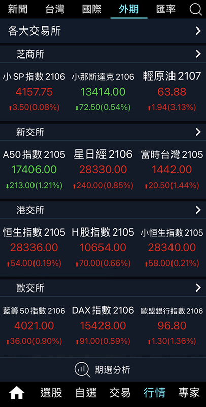 連結全球16大交易所。白銀、玉米、日經、恆生、小道瓊、德國指數、歐元、日元、黃金、輕原油等商品均可交易! -
